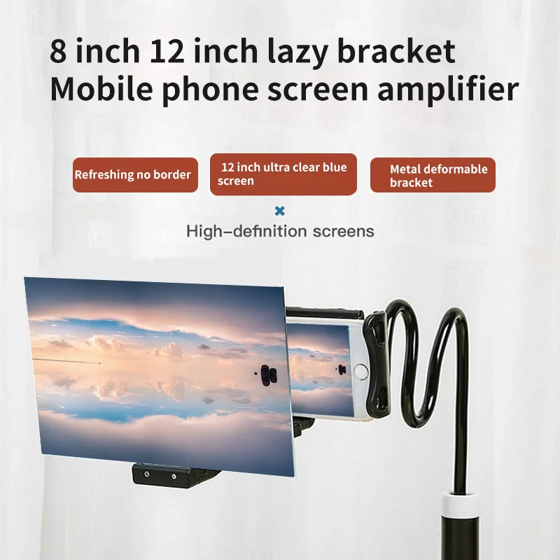 8/12 Inch Phone Screen Long Arm Bedside Lazy Phone Holder Amplifier Magnifying Universal 360 Rotati