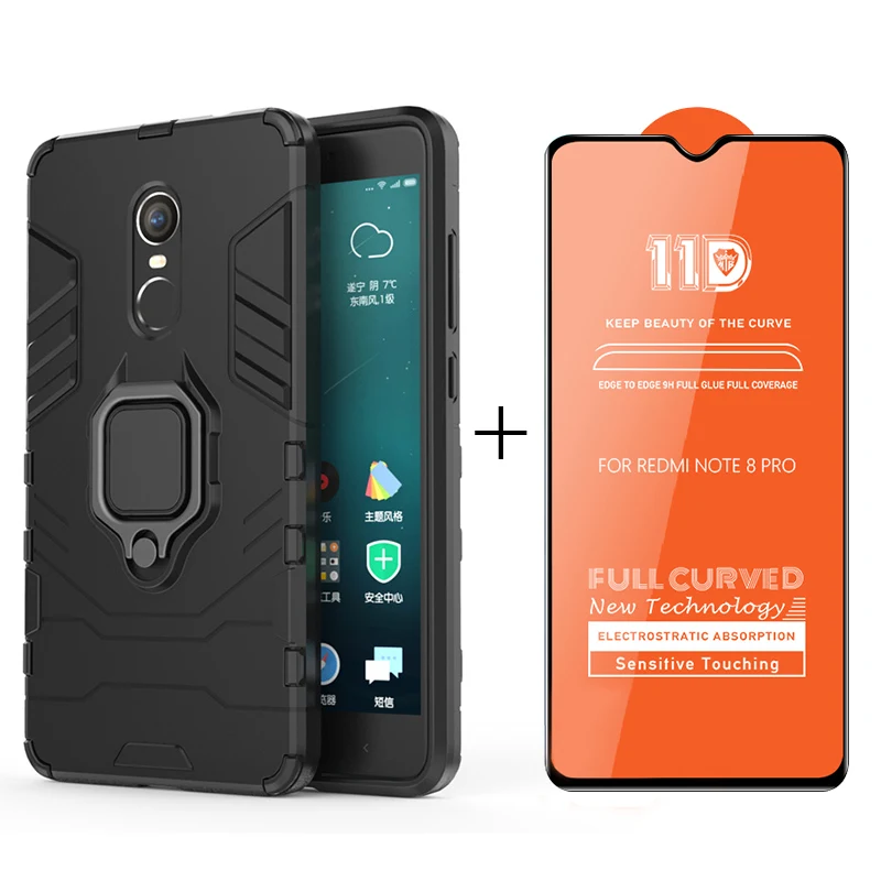 3 in1 case + protective glass for redmi note 8 7 pro screen protector lens glass on xiomi redmi 8 8