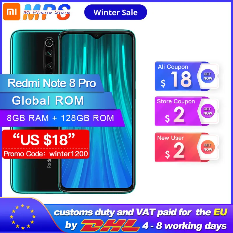 HOT Sale Global ROM Xiaomi Redmi Note 8 Pro 8GB 128GB Smartphone Octa Core MTK Helio G90T 64MP Rear Camera 4